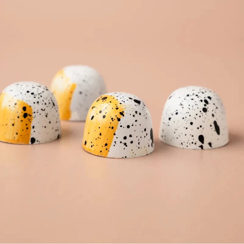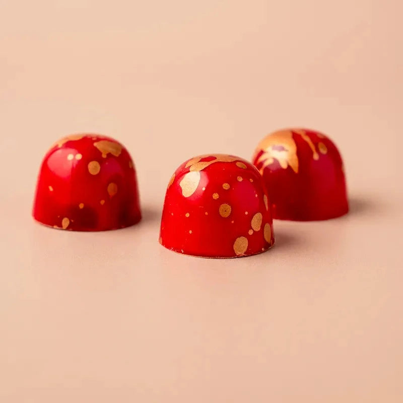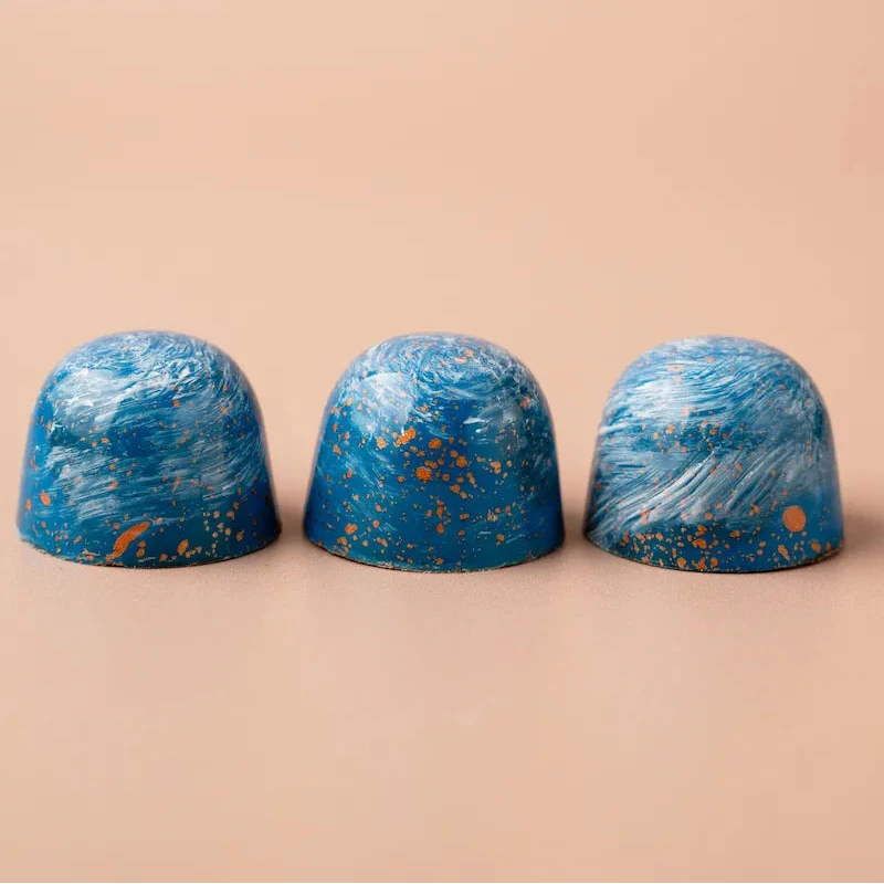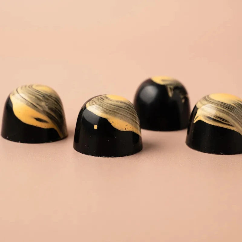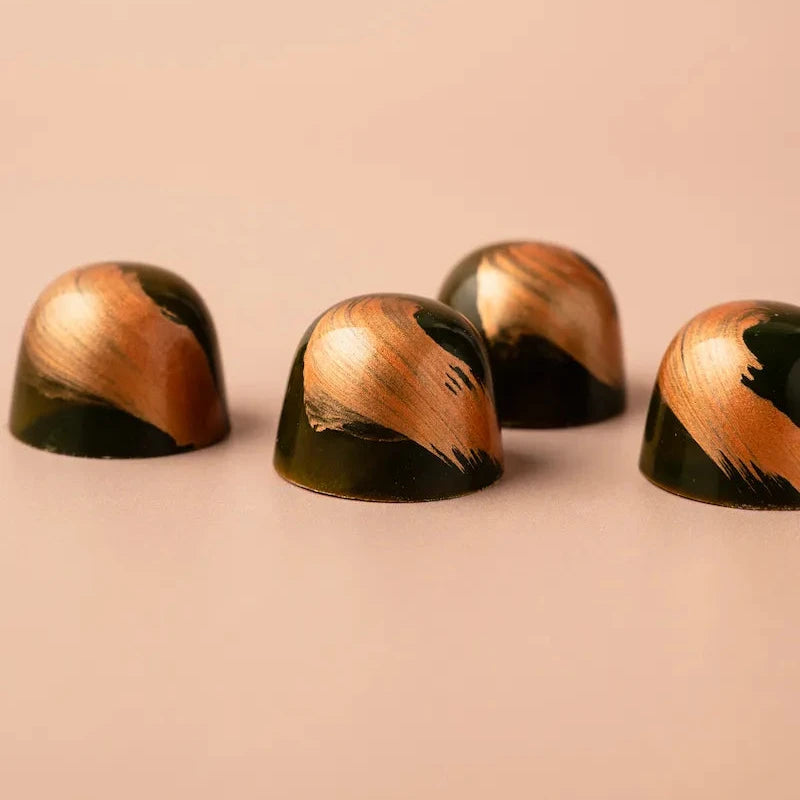 Elke bonbon uit onze collectie is een klein kunstwerk van ambacht en verfijning. Met zorg met de hand vervaardigd, verenigen onze creaties de puurste chocolade met verrassende vullingen. Van zachte karamel en verfijnde specerijen tot fruitige tonen en een vleugje likeur. Elke smaak vertelt zijn eigen verhaal, maar samen vormen ze een harmonieuze symfonie van texturen en aroma’s.