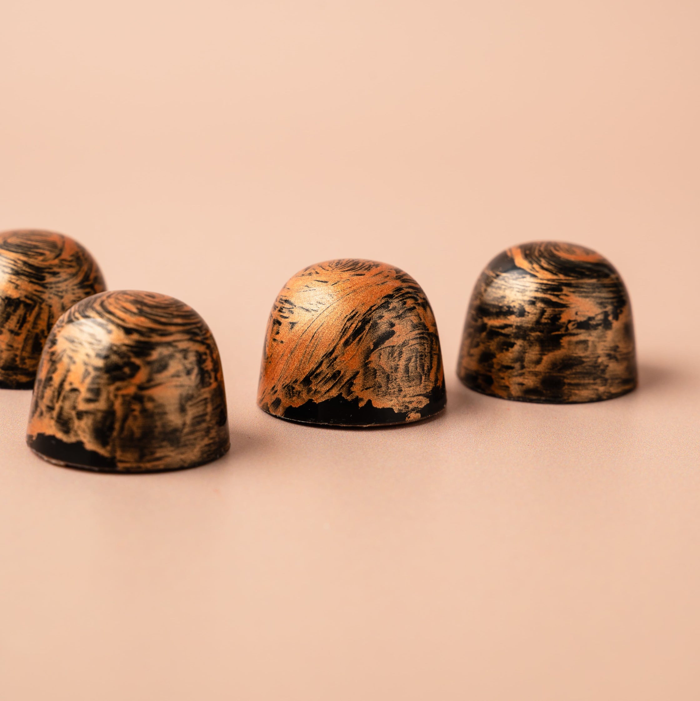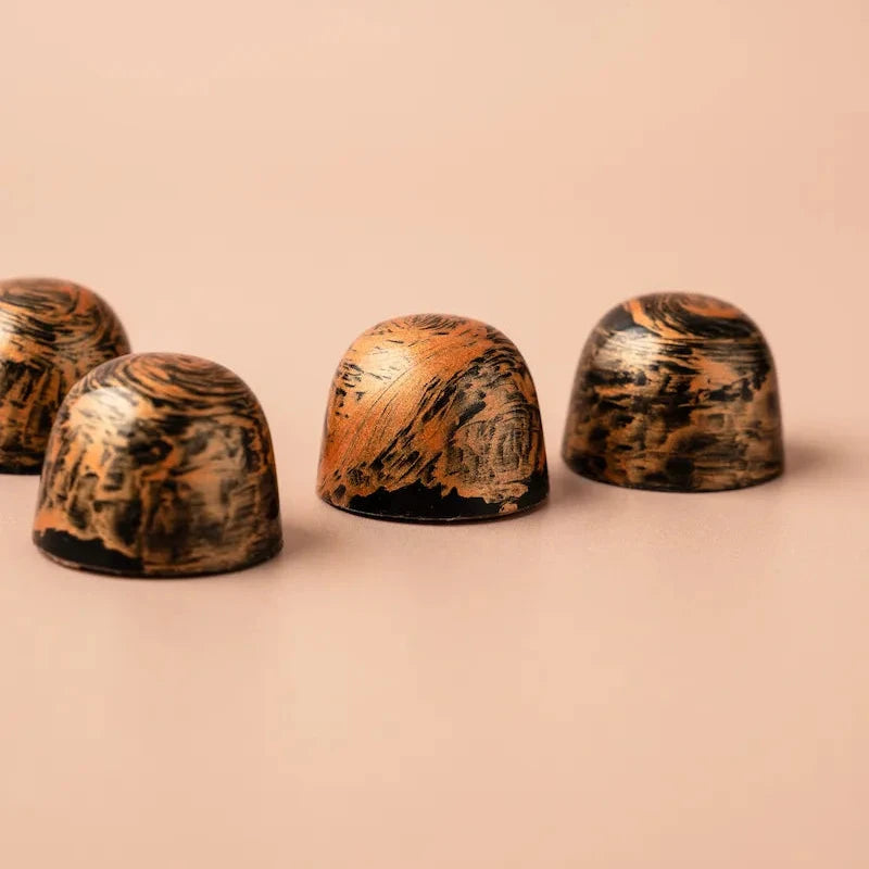 Voor de liefhebber van verfijnde texturen: vers geroosterde pecannoten brengen een knapperige bite die naadloos samensmelt met de zijdezachte melkchocolade. Een bonbon die tegelijk krachtig en elegant is, met een subtiel geroosterde toets.
