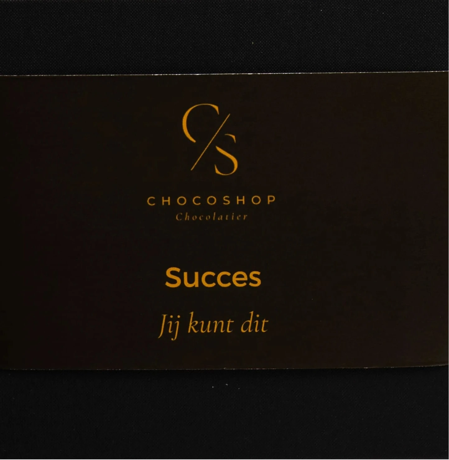 Een klein steuntje in de rug voor een groot moment. De ‘Succes’ sleeve maakt van jouw bonbondoosje een motiverend cad...